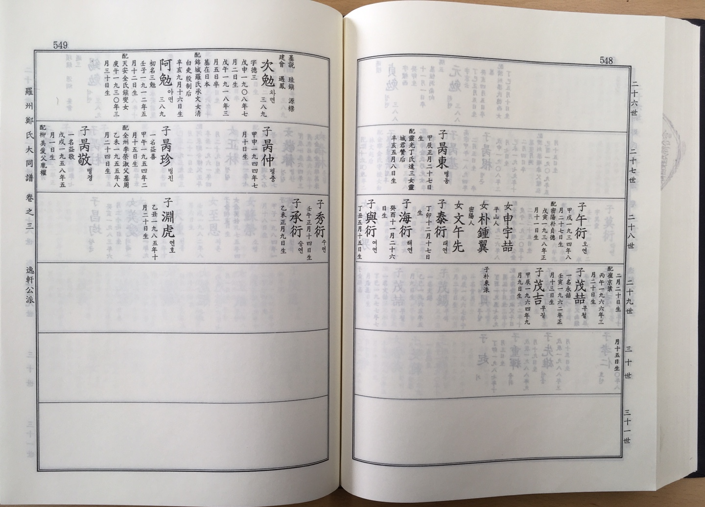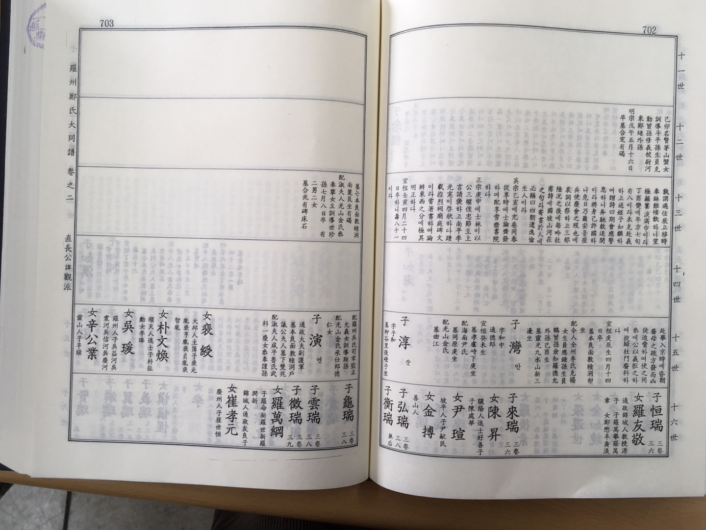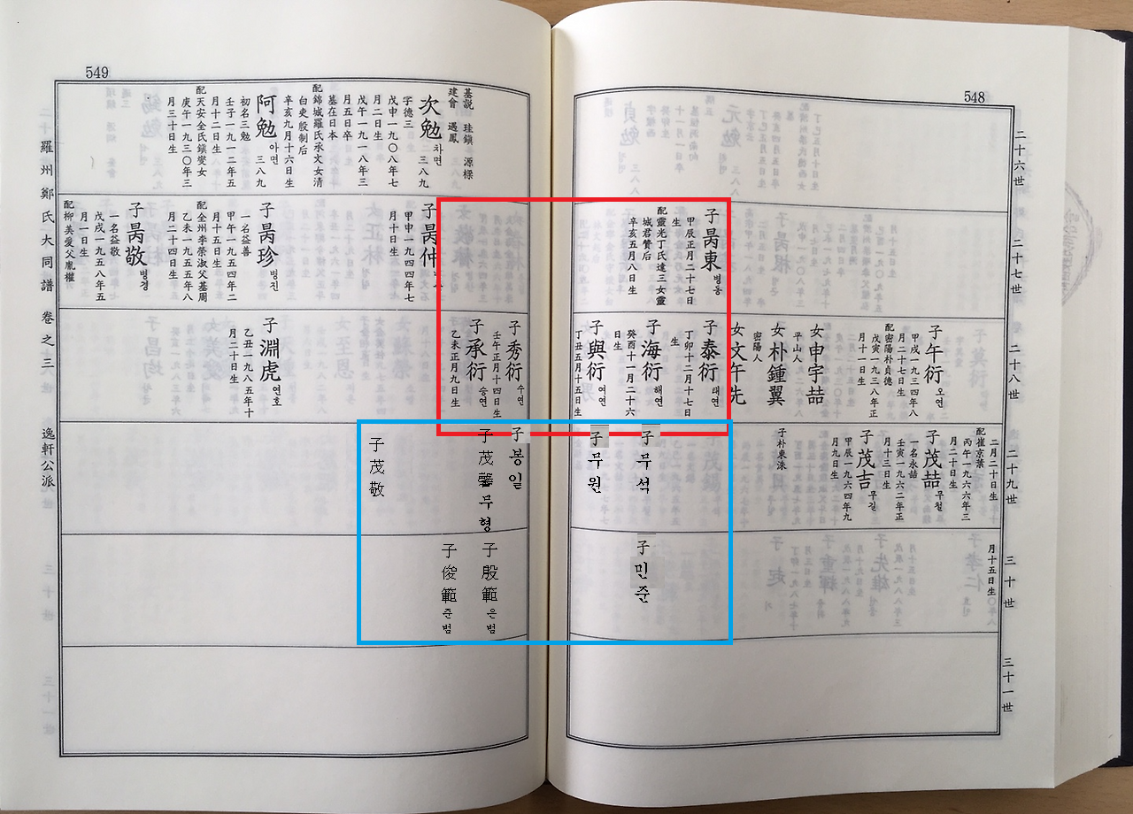 7/16. 앞장에서 계속 12世 念祖 ~ 13世 諶~ 다음 장 14世 汝漢