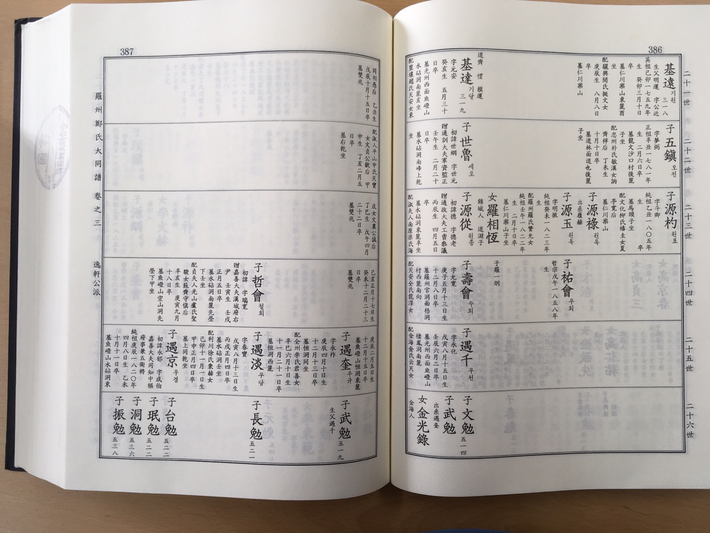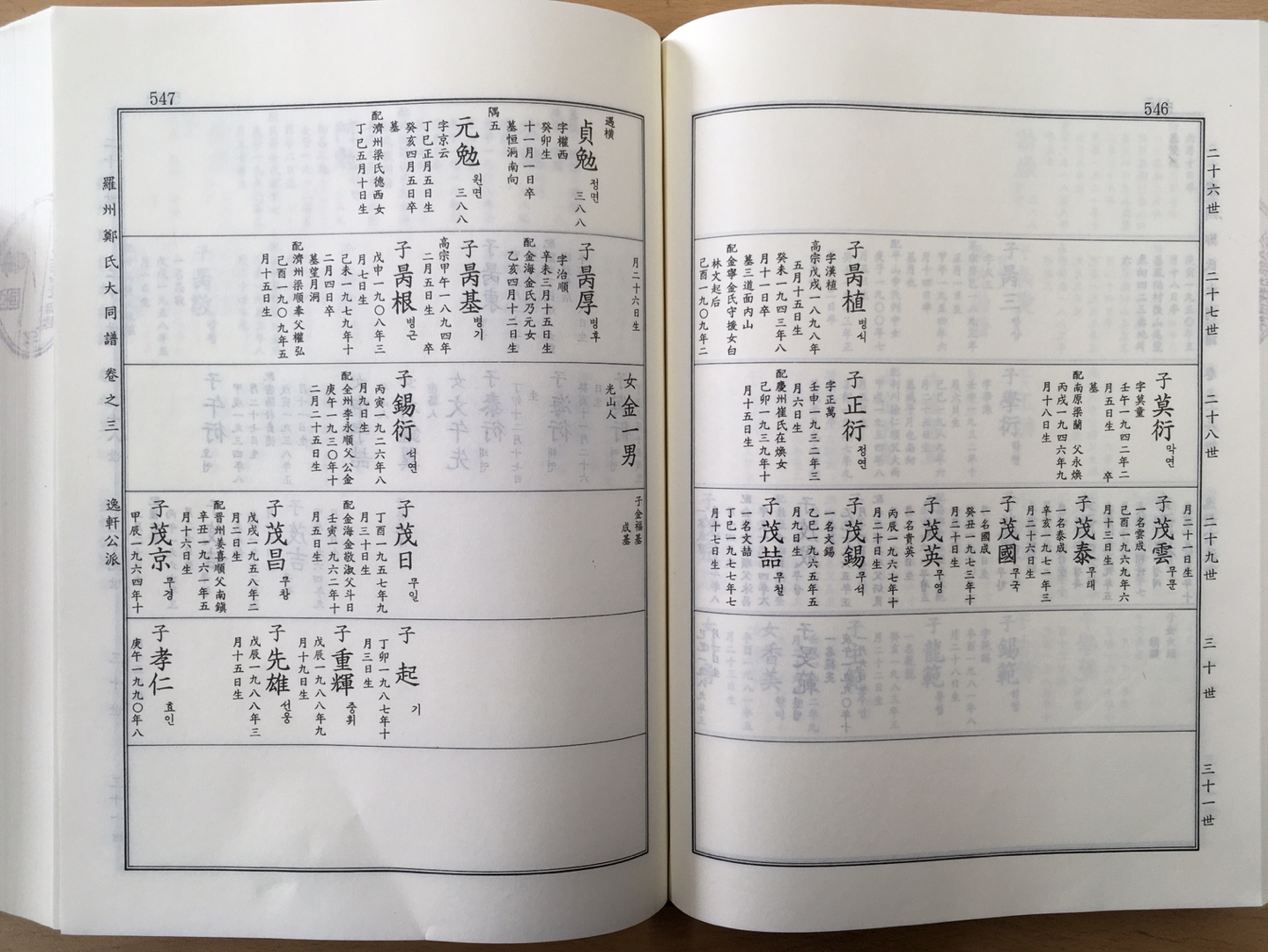 11/16. 21世 基達 ~22世 世魯~ 23世 源從~24世 哲會 ~ 다음 장 25世 遇五12/16. 앞 장 24世 哲會~ 25世 遇五~ 26世 元勉12/16. 26世 元勉~ 다음 장에 27世 昺東13/16. 26世 元勉 ~27世 昺東~28세 承衍14/16. 우리 집 안 30세 손 민준, 은범 준범, < 일헌공 18세 손>